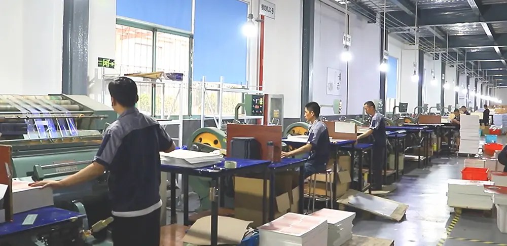 Located in the International city Shanghai, well connected by Air, Sea and Land. 16000 Square meter factory. 3 Heidelberg printing machines, 40+ Production machines, Output per day 100K+.